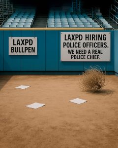 “LAXPD needs leadership. We have the rank-and-file talent. But our bench needs to be filled. We need backup. We need leadership — not a ‘got ya’ chief. We need backing. We are in the game already — but our coach is MIA. Literally and figuratively. We need a winning leader because we are winners. Los Angeles is for winners. Last night proved it. Keep making it happen, Dodgers. Let’s make it happen at LAXPD, too.”