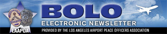 The Los Angeles Airport Peace Officers' Association (LAAPOA) represents the sworn police officers and firefighters of the Los Angeles Airport Police Department assigned to protect and serve Los Angeles International Airport (LAX), LA/Ontario International Airport (ONT) and Van Nuys Airport (VNY). For more information on LAAPOA, please visit www.LAAPOA.com.